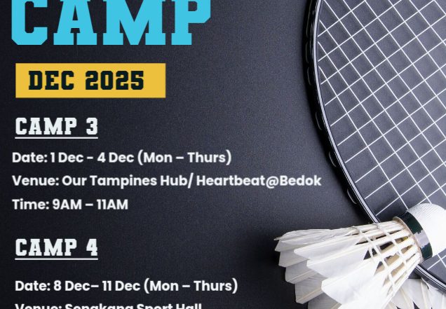 Nov & Dec Holiday Badminton Camp 2025 Our Kids/Teens Holiday Badminton Camp is up! Dun miss out! CAMP 1 Date: 24 Nov – 27 Nov (Mon – Thurs) Venue: Our Tampines Hub/ Heartbeat@Bedok Time: 9AM [...]